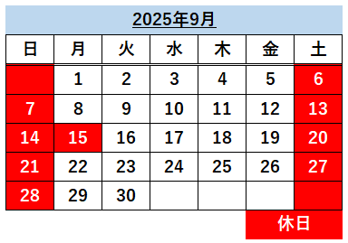 9月の営業日・休業日